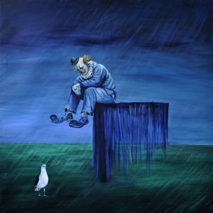 Spaßvogel – 2026, 140 x 140 cm, Öl auf Leinwand